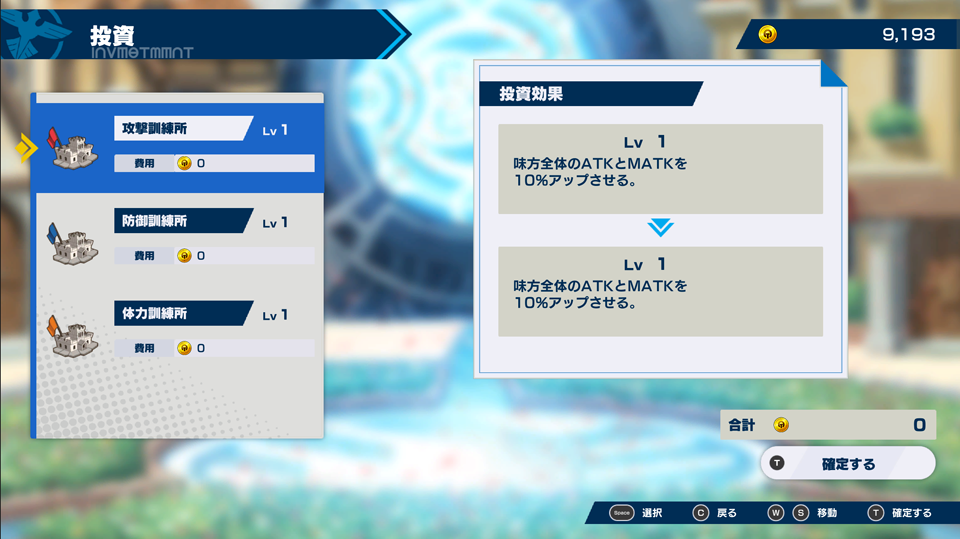 訓練所へ投資することにより戦闘能力を大きく向上することができますので、人材への投資は惜しまなく行いましょう。